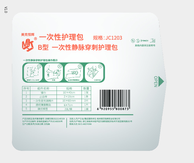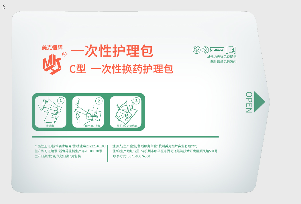 一次性护理包包括A型一次性中心静脉导管穿刺包;B型一次性静脉穿刺护理包;C型一次性换药护理包 -